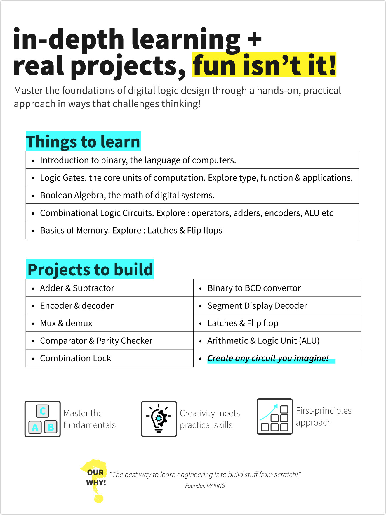 This is how you truly discover the “how & why” of digital systems - with first-principles approach, master the basics of digital design & build circuits from ground-up.