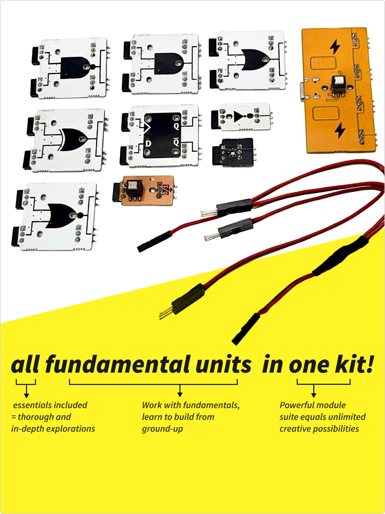 A digital electronics kit that makes hands-on, practical learning exponentially more intuitive with it's unique plug-n-build design.